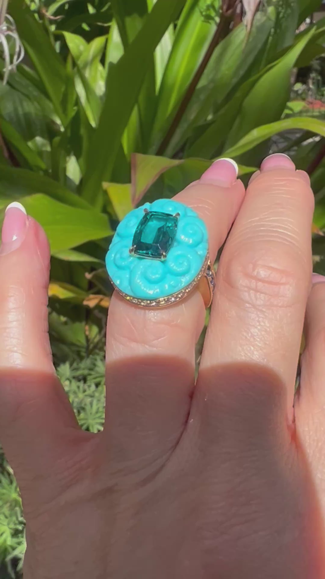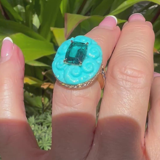 18k Gold Turquoise Tourmaline Diamond Sapphire Ring